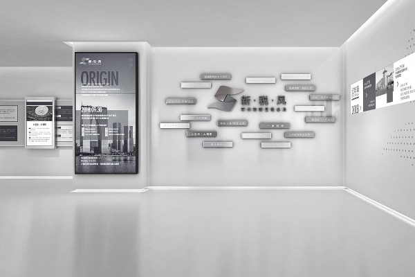 为配合主题板块设置,整个展厅采用了清新明快的装修风格。以白色为主调,搭配淡黄和淡蓝两种颜色点缀,既能体现出年轻时尚感,同时也不失庄重肃穆。在空间布局上也充分考虑了环保、节能等因素。