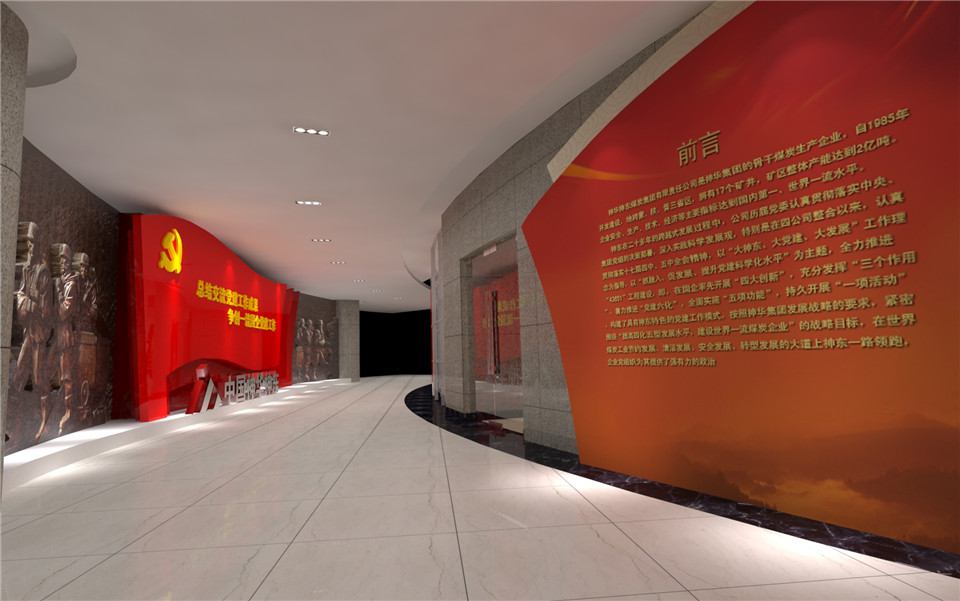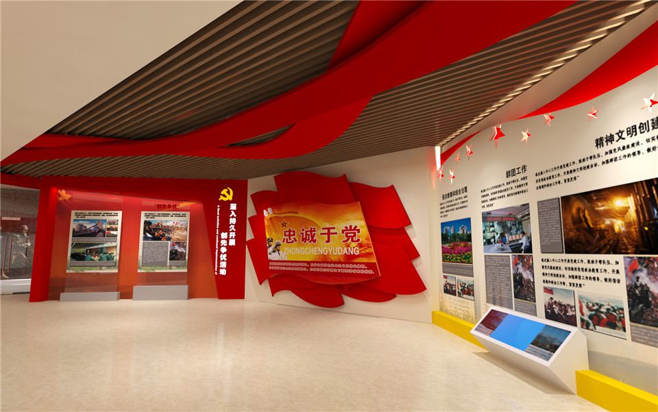 工业集团党建展厅建设用来展示总结交流党建工作成果和争创一流党建文化的工作。党建展厅建设项目主要分为党组织历史沿革及现状。以改革创新精神,全面加强企业党建文化的工作。展示实施的党建创新工程。展示了抓融入、促发展、惠群众、聚人心、保和谐。坚持深入持久开展创先争优的活动。大红色是必备色,然后是展厅设计的形状和参观顺序,红色、金色这些都可以作为我们的主题使用,主要是根据我国红色文化的背景色和LOGO颜色进行选取的。