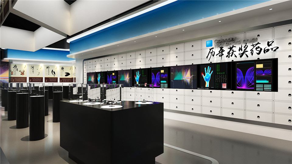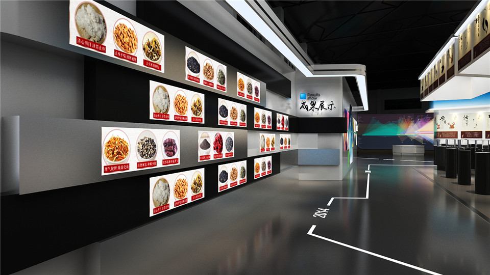 医药药材企业展厅设计效果图由公司专业设计团队创建的大型公司药品展览厅,占地面积420平方米。 这次,展厅设计师结合了多种风格,营造出庄重的展厅氛围。 除了将各种重点药材放在最显眼的位置之外,同时,在每面墙上,设计师还使用最简单的墙体字体显示方法来展示公司的简介,而顶层设计则采用了 堡垒顶部表面具有强烈的层次感,地面使用灰色和米白色砖块增强了大厅的视觉效果。